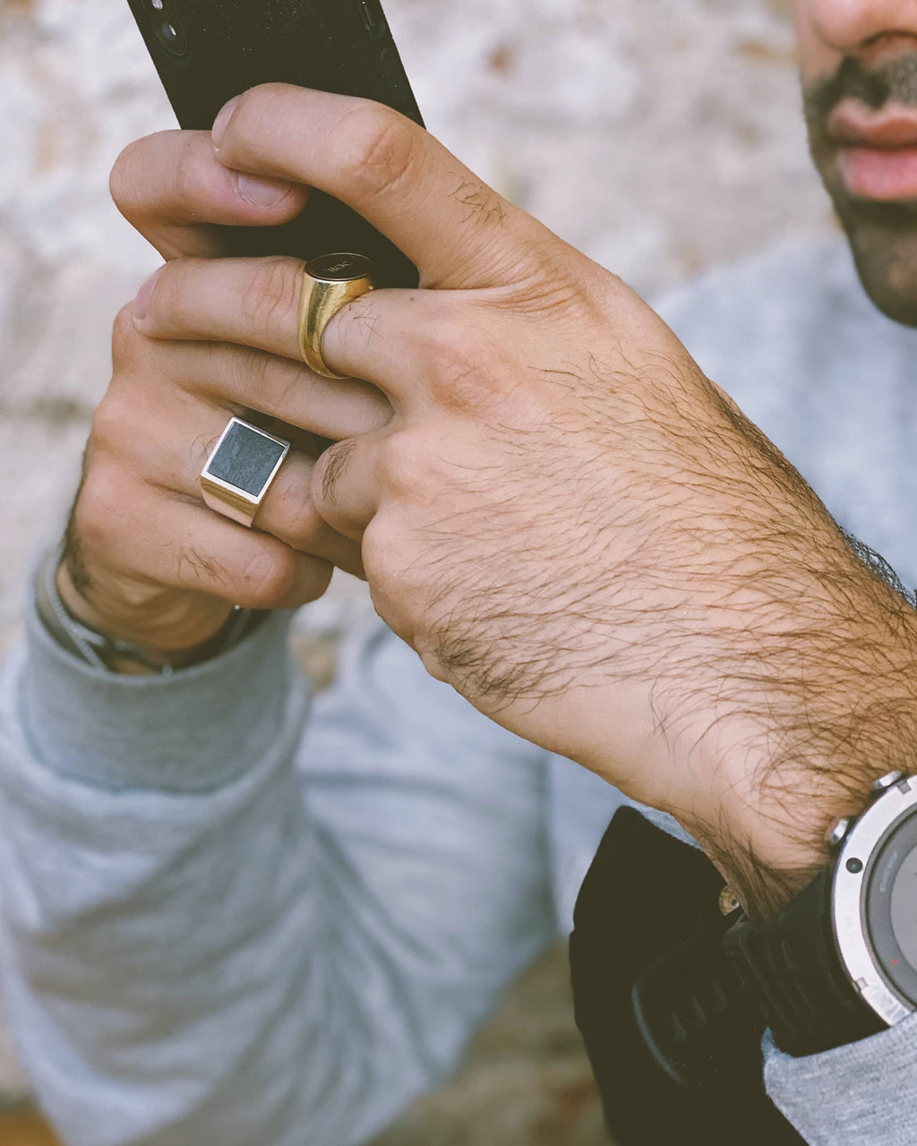 Chevalière en argent sterling 925 et ardoise naturelle non polie. Voir la description.
